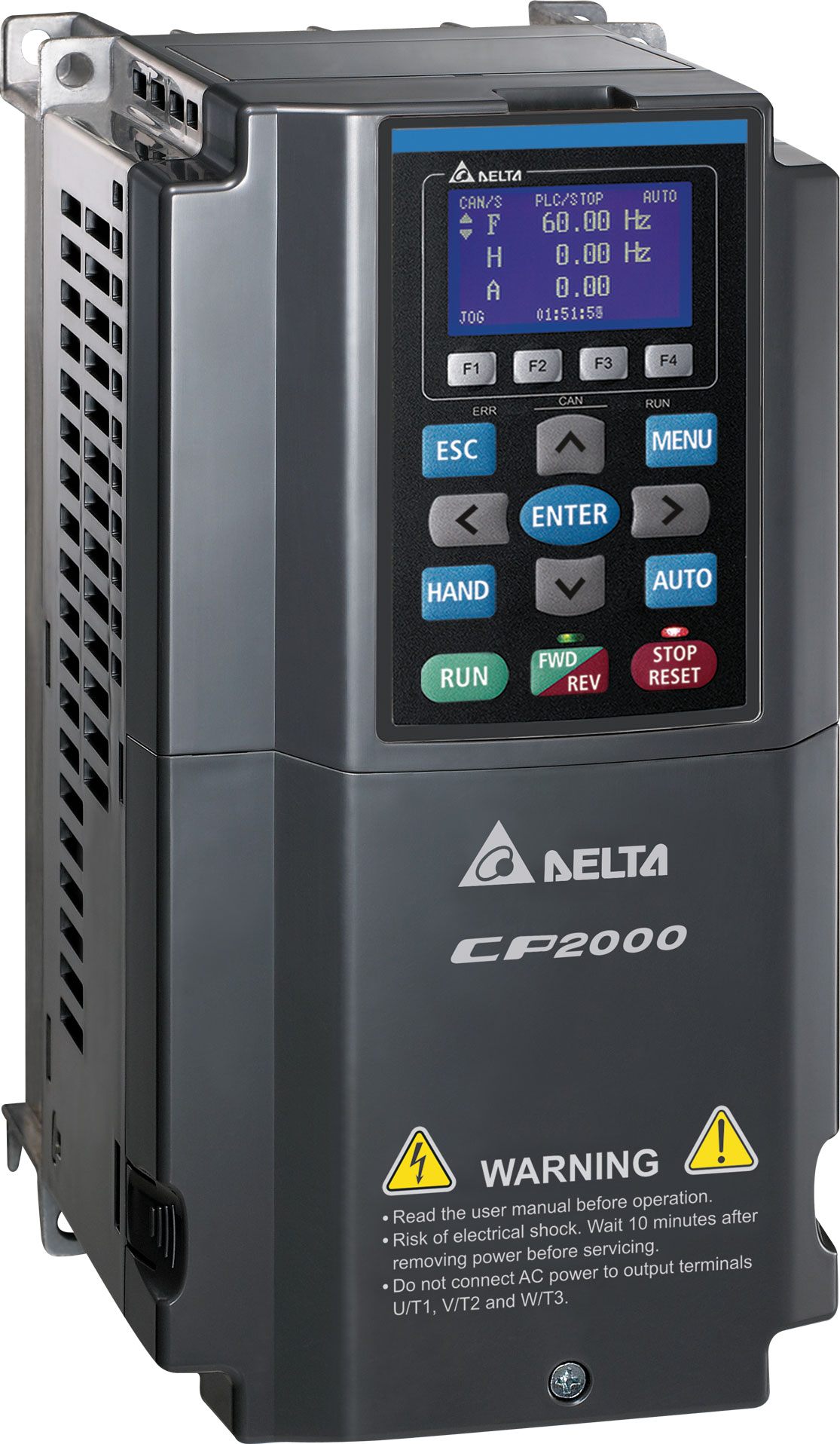 Tecnologia Verde de Automação Industrial O Delta CP2000 é um inversor projetado para aplicações de bombas, ventiladores e sistemas HVAC, combinando eficiência energética, segurança e flexibilidade de controle.